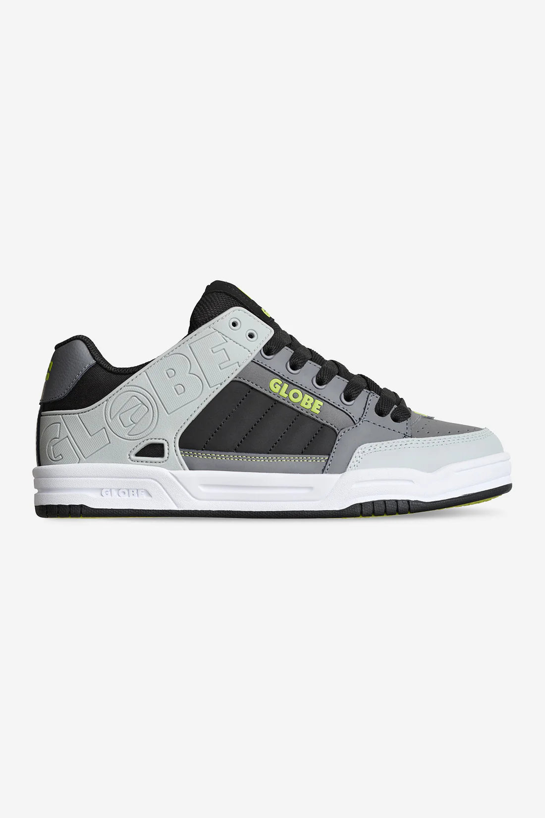 The Tilt in Greyscale/Black Globe’s classic heritage skate silhouette featuring a moulded TPR outside collar for support and durability, and S-Trac™ sole pattern for enhanced grip and board feel.